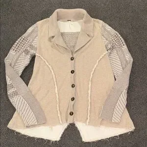 Free People Stylish Beige and Brown Button-Up Cardigan