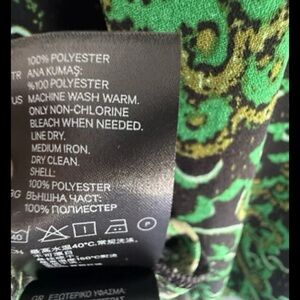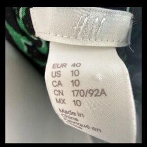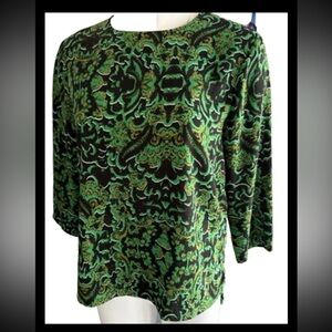 H&M Green and black Print Blouse 3/4 sleeve top Back zipper Size 10