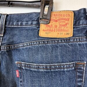 Levis 527 Jeans Mens 34x30 Blue Bootcut Medium Wash Denim Casual Pants Zip Fly