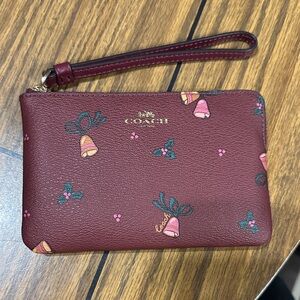 Coach Women's Small Corner Zip Wristlet with Holiday Bells Print