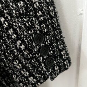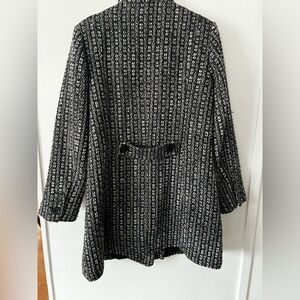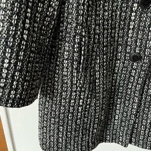 Chic and cozy pea coat by London Fog. Features a textured black and white pattern. Ideal for stylish warmth.