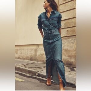 NWT Zara Z1975 long split denim raw hem maxi skirt size L