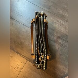 Gold tone hardware.
