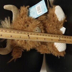 So soft and cuddly. Shaggy little highland cow plush toy. About 9" with horns.