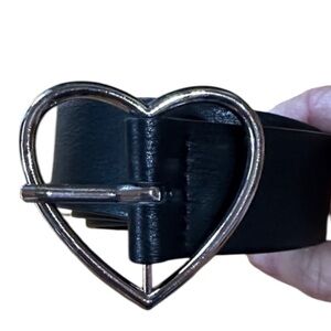 Brandy Melville Stylish black belt with a silver heart-shaped buckle. Perfect for adding a chic touch to any outfit.