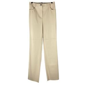 Vanilla Killa pants in beige faux leather featuring belt loops, front pockets, and clean topstitching. This garment features smooth matte finish.