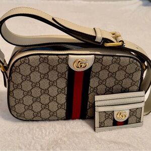 Gucci Ophidia Beige and Red Crossbody with Card Holder
