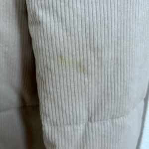 Lightly worn, in excellent condition. Gorgeous Bone/Cream/Off White Color. Slight stain on the back of one sleeve; it is shown in the last picture of the photo carousel. Retails for $248.