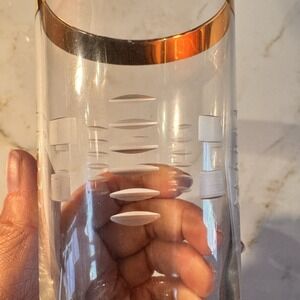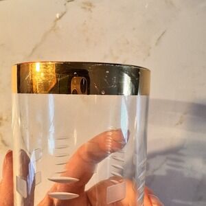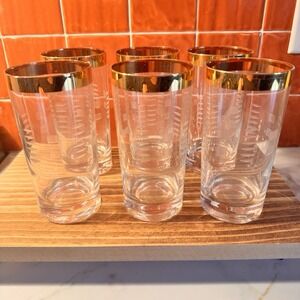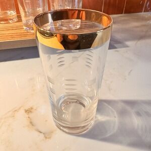 Vintage MCM Highball Gold Rim Glasses Etched Glass Set Of 6 Barware
