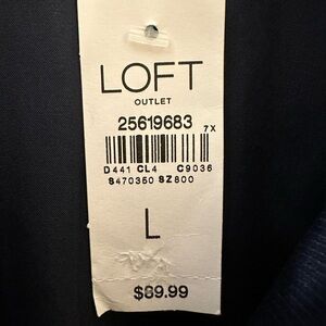 Sophisticated navy blazer from LOFT outlet. Features structured design with front pocket details (not functional). Perfect for professional and casual settings. NWT perfect condition.