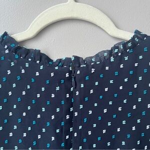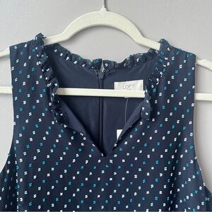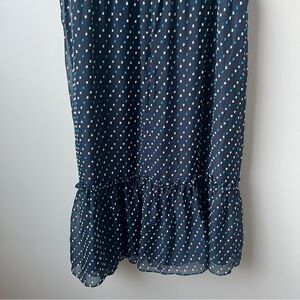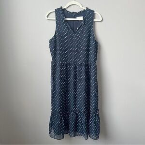 Loft Outlet Dress Women's 8 New NWT Navy Blue Tufted Swiss Dots Midi Ruffles