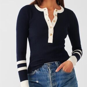 Faherty Cotton Cashmere Mikki Ribbed Henley Pullover Navy size Small