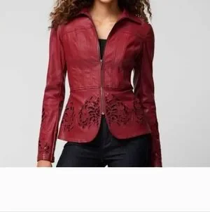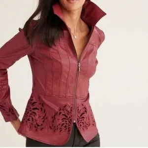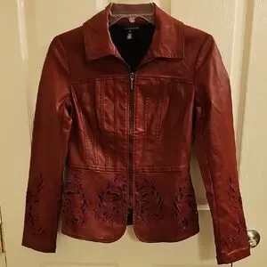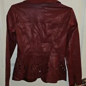 ๐ค๐คWhite House Black Market Burgundy Denim Coated Jacket - Size Small/0