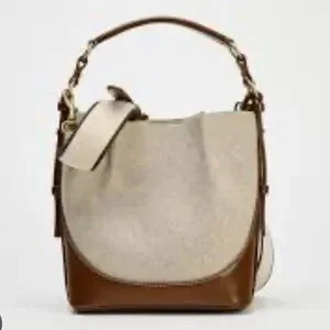 Zara Elegant Tan and Cream Women's mini bucket Bag NWT