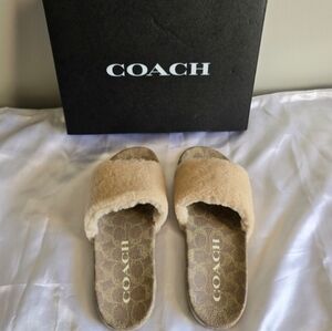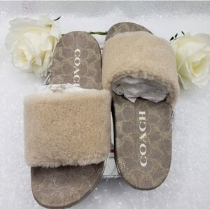 Coach Ulla Shearling Slides Ivory Ladies sz 10 Casual Slip-on