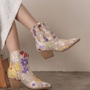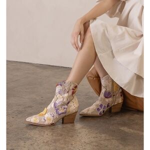 Step out in style with these floral embroidered ankle boots. Featuring a blend of vibrant colors, these boots are perfect for adding a touch of elegance to any outfit.
