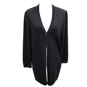 St John Basics Cardigan Sweater Jumper Womens Medium Black Mid Length Minimalist