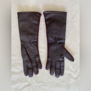 Experience comfort and style with these elegant brown faux leather gloves. Perfect for any occasion, these gloves offer a sophisticated vintage touch to your outfit. Both pies are in good condition with no holes or stains.