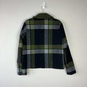 Anthropologie Women's Hutch Sherpa-Trimmed Plaid Jacket size S Grunge Revival