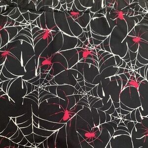SHEIN Black and Pink Spiderweb Mini Skirt and Bra Top, Size XS. Stylish mini skirt with matching crop top with spiderweb design. Black base with pink spiders and white web accents. Still in good condition. Open to offers and bundles!