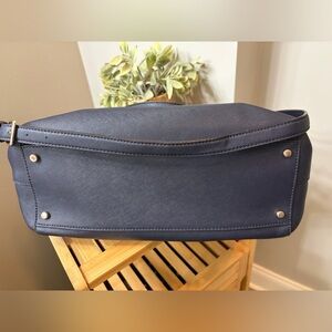 Elegant and versatile, this Kate Spade tote bag in navy blue is perfect for any occasion. Crafted from high-quality leather, it offers both style and durability. Ideal for everyday use, this bag will complement any outfit. Minimal wear at one zipper and some scratches on front label (see photos)