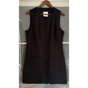 Abercrombie Fitch A&F Mara High Neck Black Button Front Vest Mini Dress Large