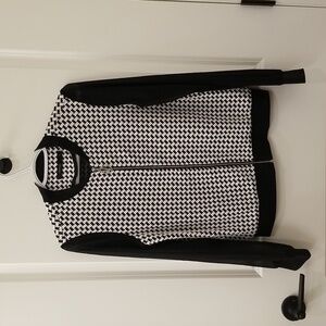 Vertigo Small Houndstooth Sheer Sleeves Zip-Up Sweater