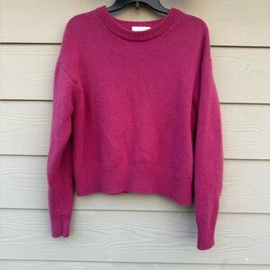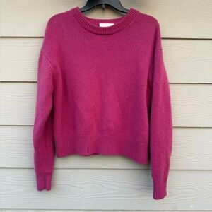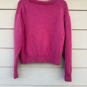 Bright pink sweater with a classic crew neck. Soft and comfortable. Ideal for layering or wearing alone.