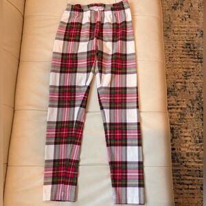 Vibrant red floral and classic plaid pajama bottoms. Soft and comfortable for kids. Gentle use, Hanna Andersson quality.