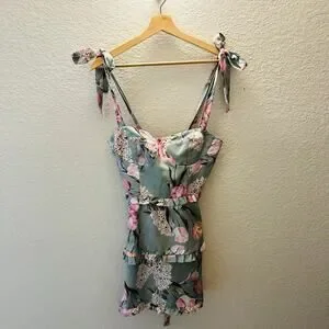Show Me Your Mumu Lady Corset Mini Dress Sage Floral Lace Up S Coquette Cottage
