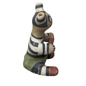 This handmade figurine showcases traditional Native American artistry with unique striped patterns and vibrant colors. Ideal for collectors or cultural art enthusiasts.
