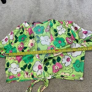 Zara fluorescent lime floral wrap satin effect crop top Sz S NWT