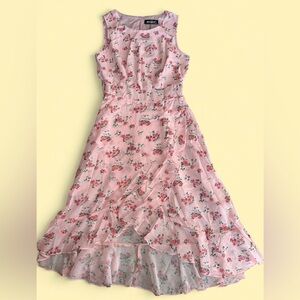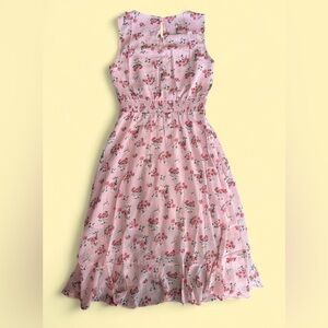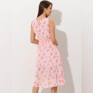 Allegra K Pink Floral Sleeveless Midi Dress XS | Smocked Waist - New With Tags