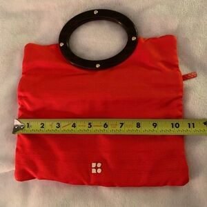 Stunning rare never been used Kate Spade Jocelyn pink/coral bag with original dust bag. Zipper opening, with polka dot inside design. Can be used as a carry bag with handle or folded over as a clutch. Material is a silky textured/ribbed fabric. In excellent brand new condition. Measurements in photos.