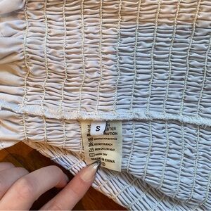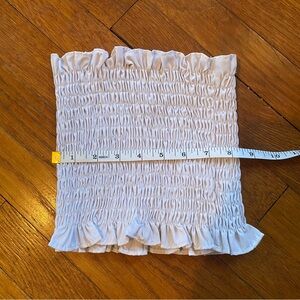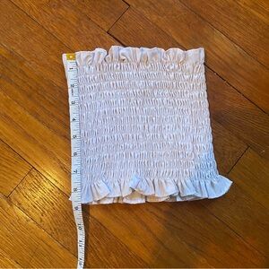 Chic white smocked tube top with ruffle details. Perfect for casual outings in the summer