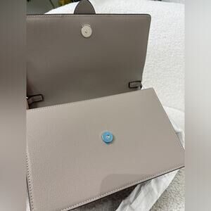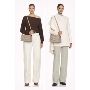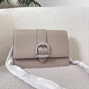This Jimmy Choo shoulder bag is crafted from smooth calfskin leather and finished with the brand’s iconic crystal-embellished buckle for a refined yet glamorous look. Designed with a structured silhouette, it offers both elegance and practicality—perfect for day-to-night styling. The neutral tone makes it easy to pair with any outfit while the sparkling hardware adds a signature Jimmy Choo statement.