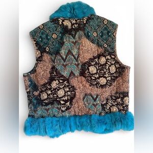 Vintage Paisley & Rabbit Fur Trim Hippie Vest