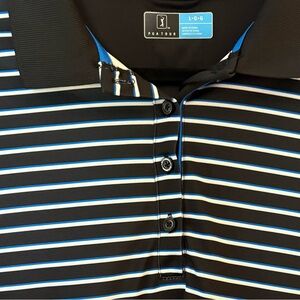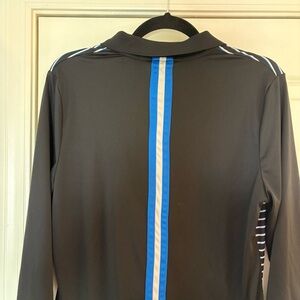 PGA Tour Women’s Black with Blue and White Stripes Long Sleeve Polo Shirt