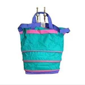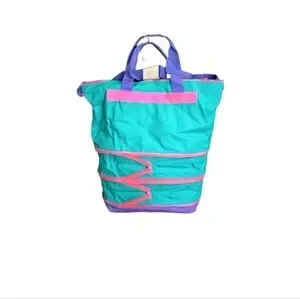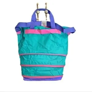 Vintage 3 zip expandable tote bag made of 100% vinyl . Vibrant and stylish women's tote bag featuring a mix of green, pink, and purple colors. Perfect for adding a pop of color to any outfit. Never used. Approximate measurements expanded 20x20x10, zipped 12 tall