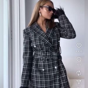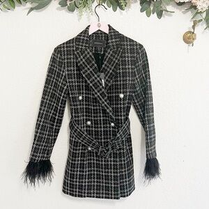 NWT BCBGMaxAzria Tweed Blazer Dress With Feather Sleeves
