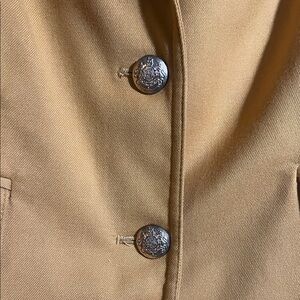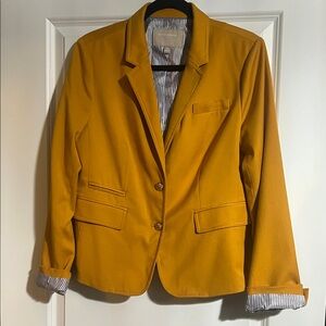 Stylish mustard colored blazer with button details. Ideal for professional and casual settings.
