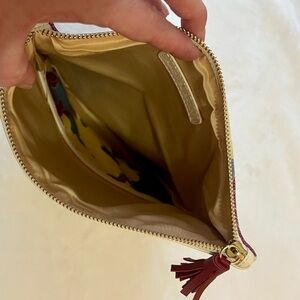 Includes a single interior pocket, nylon lining, and a tassel accent on the zipper.