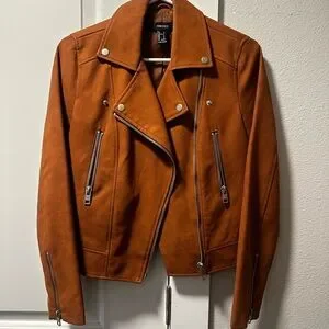 a Forever 21 faux-suede moto jacket in a brown/cognac color in excellent condition