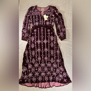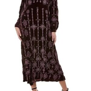 Johnny Was Althea Velvet Maxi Dress Boho Burgundy/Purple Size XS, New With Tags