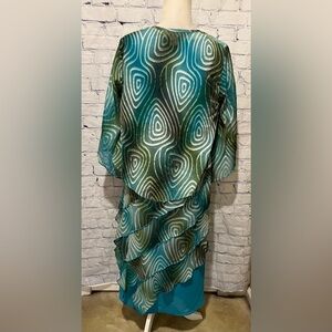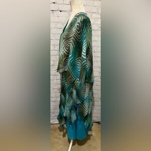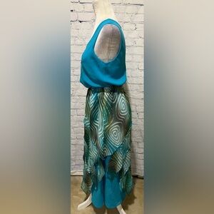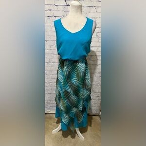 The outfit features a solid pattern that exudes timeless elegance, while the elastic waist and subtle slit add a touch of modern flair. Carefully made in the United States, this outfit is easy to care for with a simple hand wash. Whether you're dressing for a springtime meeting or a winter get-together, this versatile set is suitable for all seasons. The tank is 20 inches pit to pit and 24 inches long. The jacket is 21 inches pit to pit and 25 inches long. The skirt has a 26 inch elastic pull on waist and is 34 inches long. Smoke free home.