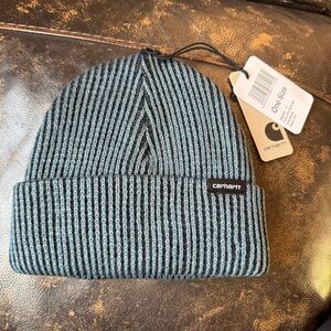 NWT Carhartt Pine Striped Beanie — Blue & Black — Streetwear + Grandpa Core Vibes
