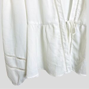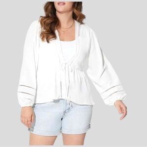 Torrid 2 Women’s White Eyelet Top Front Lace-up Cottagecore, Boho Long Bishop Sleeve