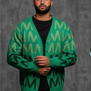 This is a Unisex Cardigan. Bold green cardigan with striking black design. Button closure. Ideal for layering. I wear a woman’s size small. This is a unisex xs and fits like a woman’s size medium. This color is currently sold out on the Milano site! As always fast shipping