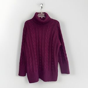 Banana Republic Breton Chunky Cable Knit Merino Wool Cashmere Sweater Turtleneck Oversized Large Burgandy