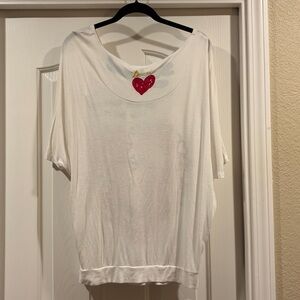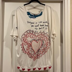Desigual White Tee with Red Heart Design size L cute for valentines